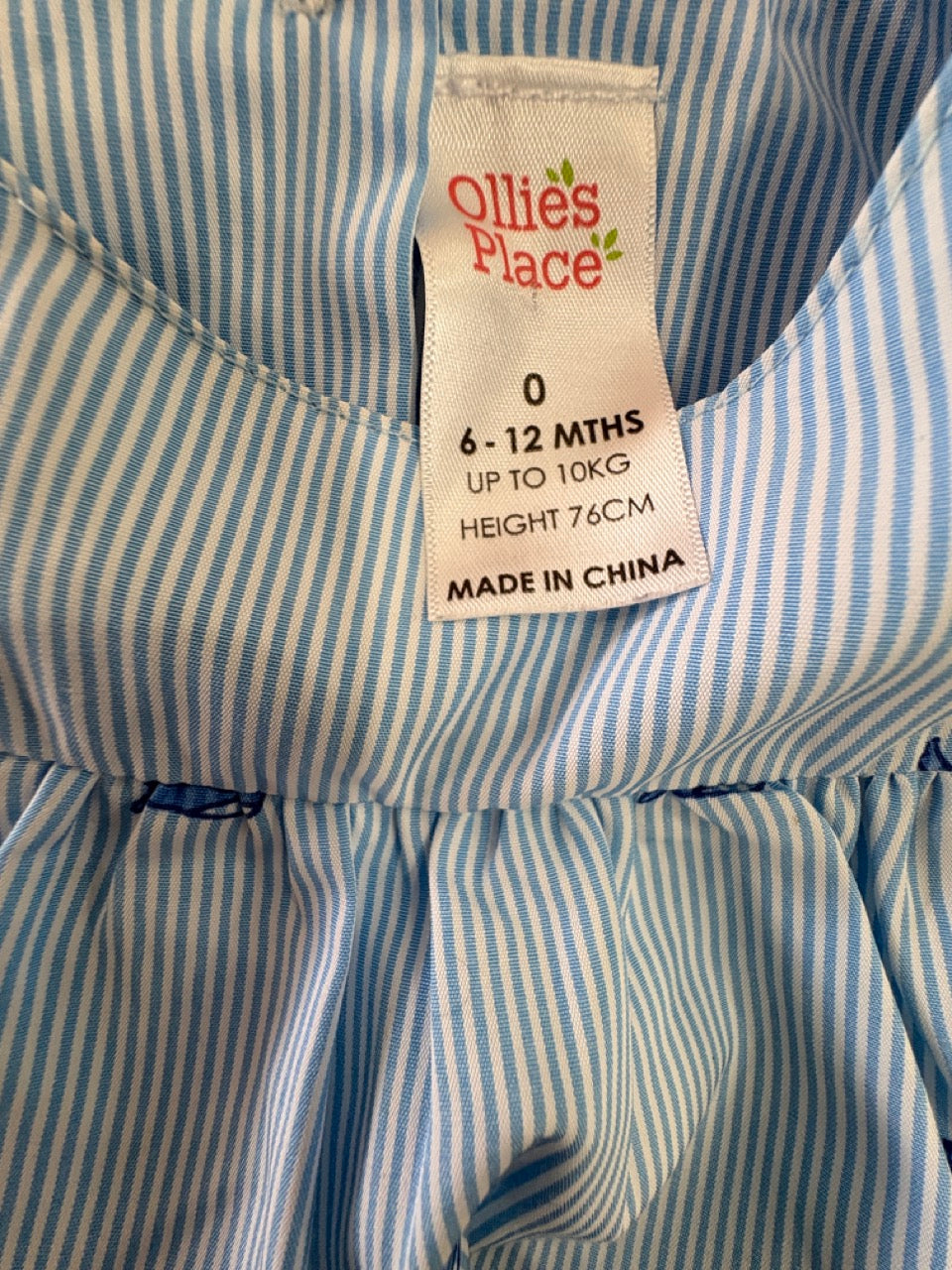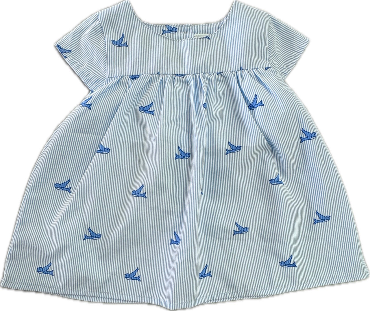 Ollie's Place, Girls Pinstriped Bird Dress, GUC, Size 0 (6-12m)