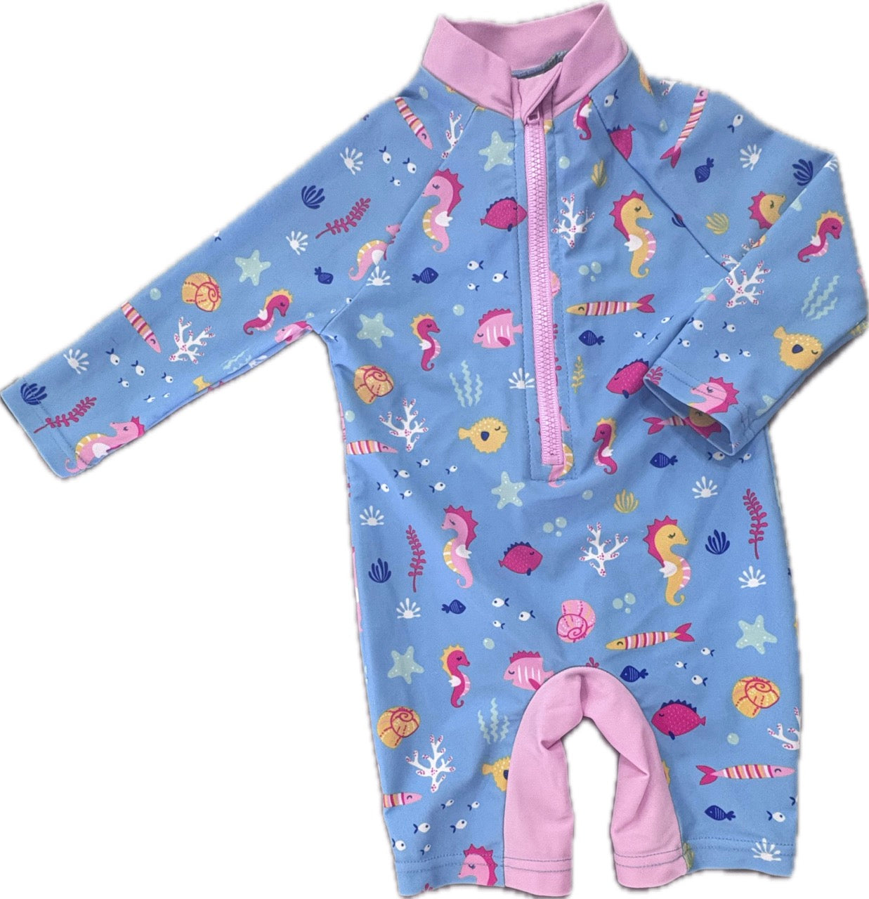 Ollie's Place, Seahorse Rashie Swimsuit, EUC, Size 00 (3-6m)