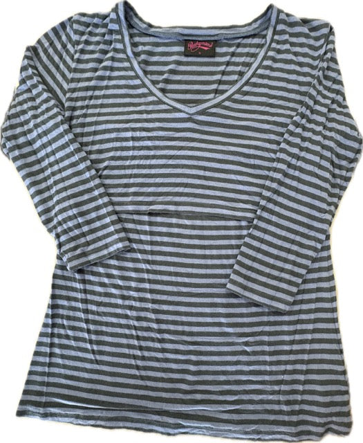 Peachymama, Bamboo Long Sleeve Nursing Tee - Blue Stripe, GUC, Maternity Size M