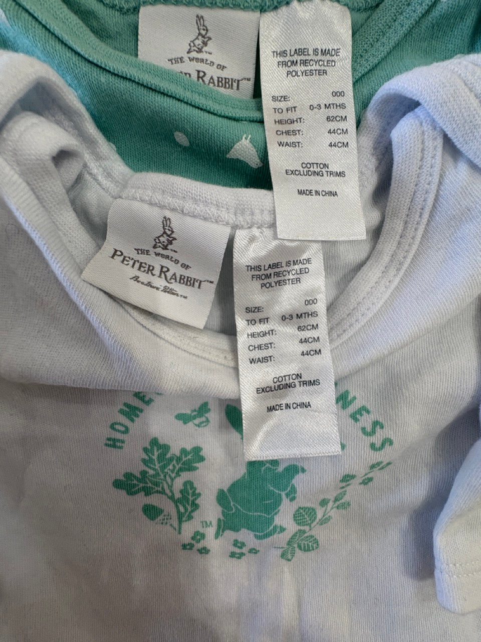 Peter Rabbit, Onesie Set of 2, GUC, Size 000 (Size 0-3m)