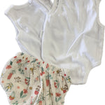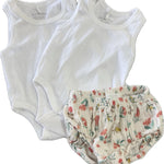 CONDITION- Includes 2 white bodysuits and Christmas bloomers.