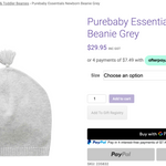 Purebaby Essentials Newborn Beanie Grey, NWOT, Size XS-S (Newborn-6m)