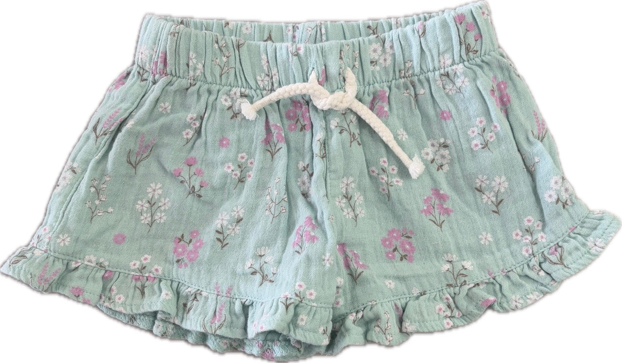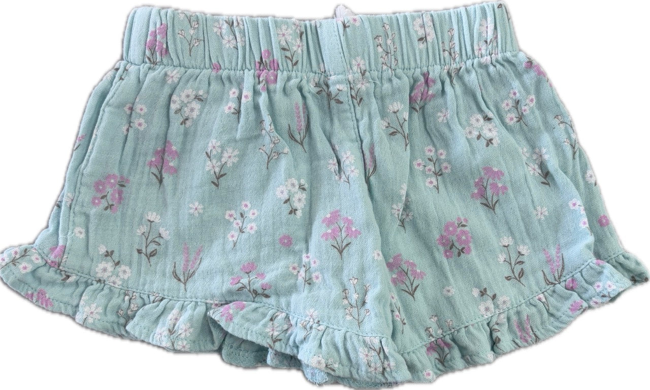 Purebaby, Teal Floral Cotton Shorts, GUC, Size 000 (0-3m)