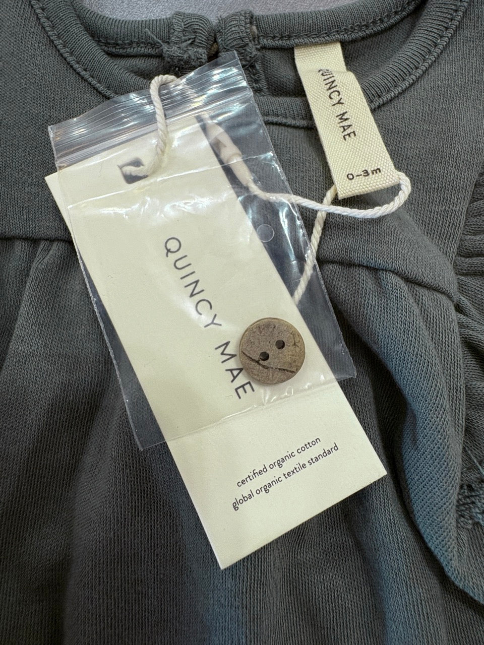 Quincy Mae Flutter Dress in Olive, NWTs, Size 000 (0-3m)