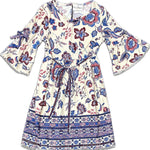 Rare Editions, Girls A-Line Dress Ivory Floral Button Flared Sleeve, GUC, Size 8