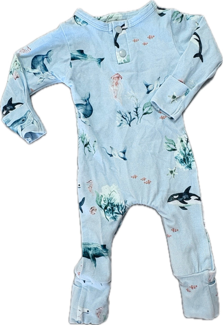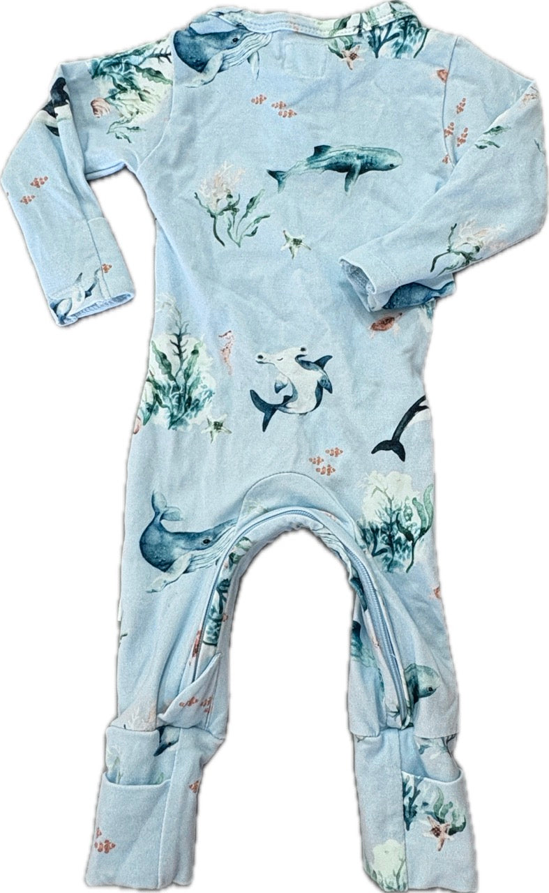 Snuggle Hunny, Ocean Organic Growsuit in Blue, EUC, Size 0000 (Newborn)