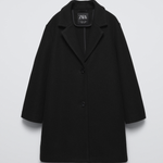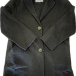 Coat with a lapel collar and long sleeves. Fastens with buttons on the front. Front pockets.