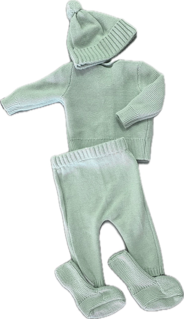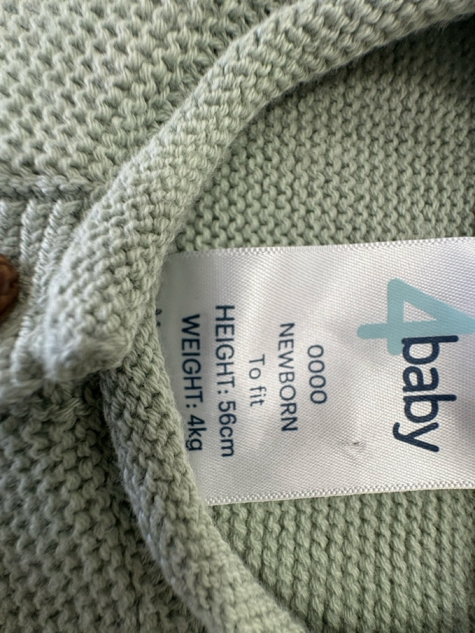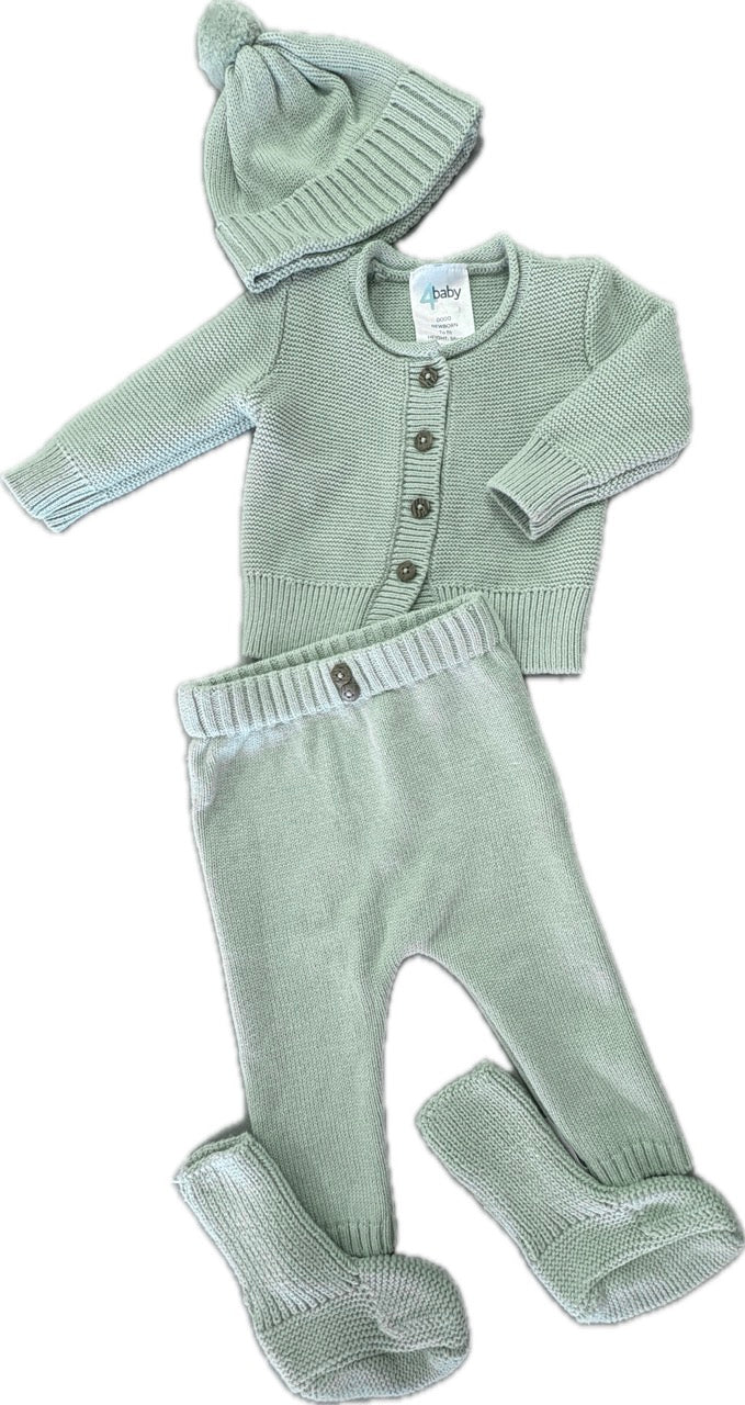 4Baby, Cardigan/Pant/Hat/Bootie Set Knit Sage, EUC, Size 0000 (Newborn)