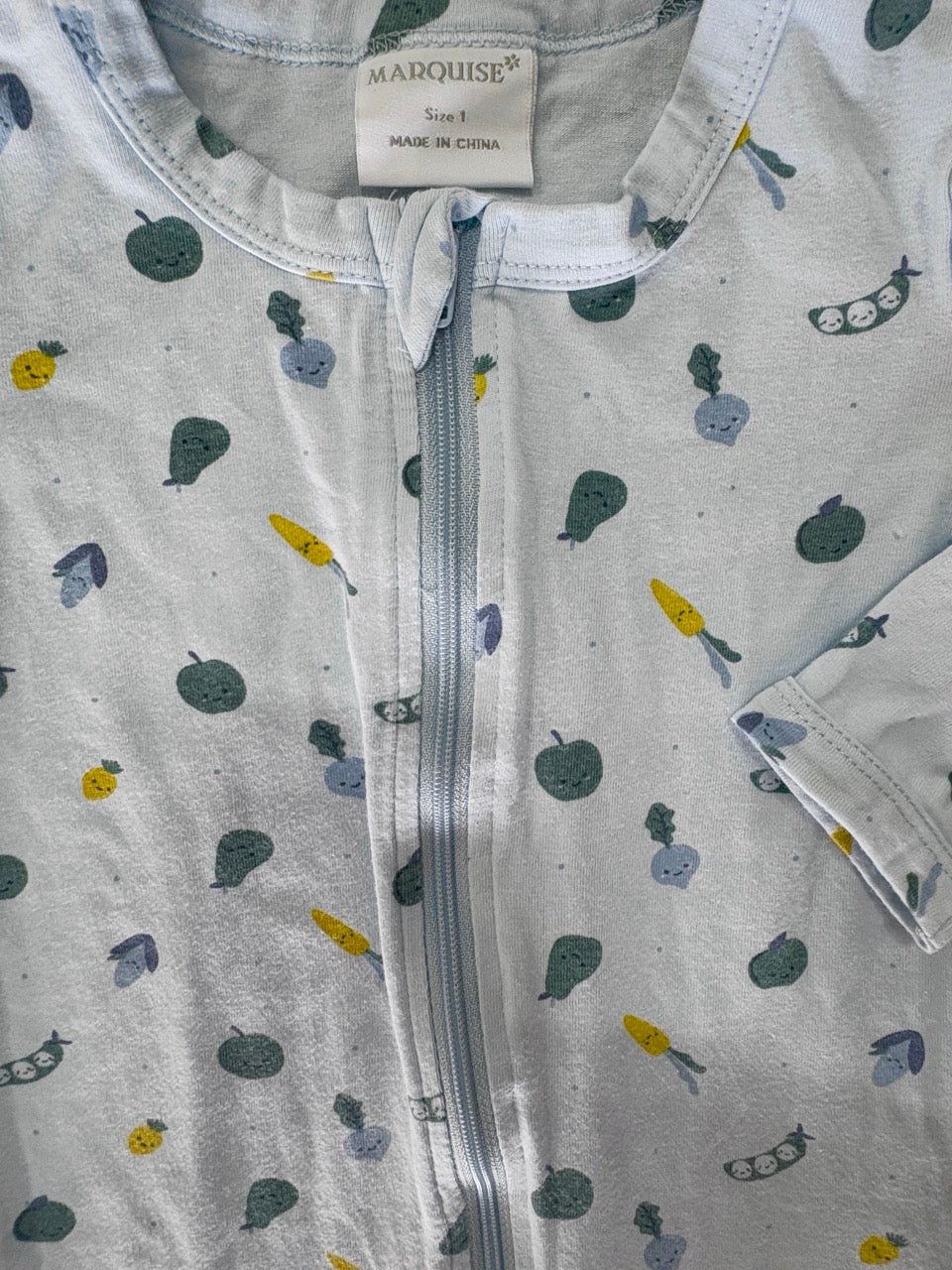 Marquise, Veggie Print Zipsuit in Blue, GUC, Size 1 (12m)