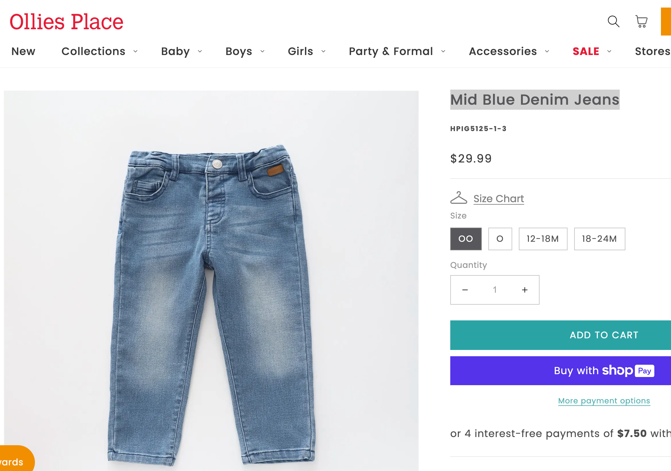Ollie's Place, Denim Stretch Adj Pants, G-FUC, Size 00 (3-6m)