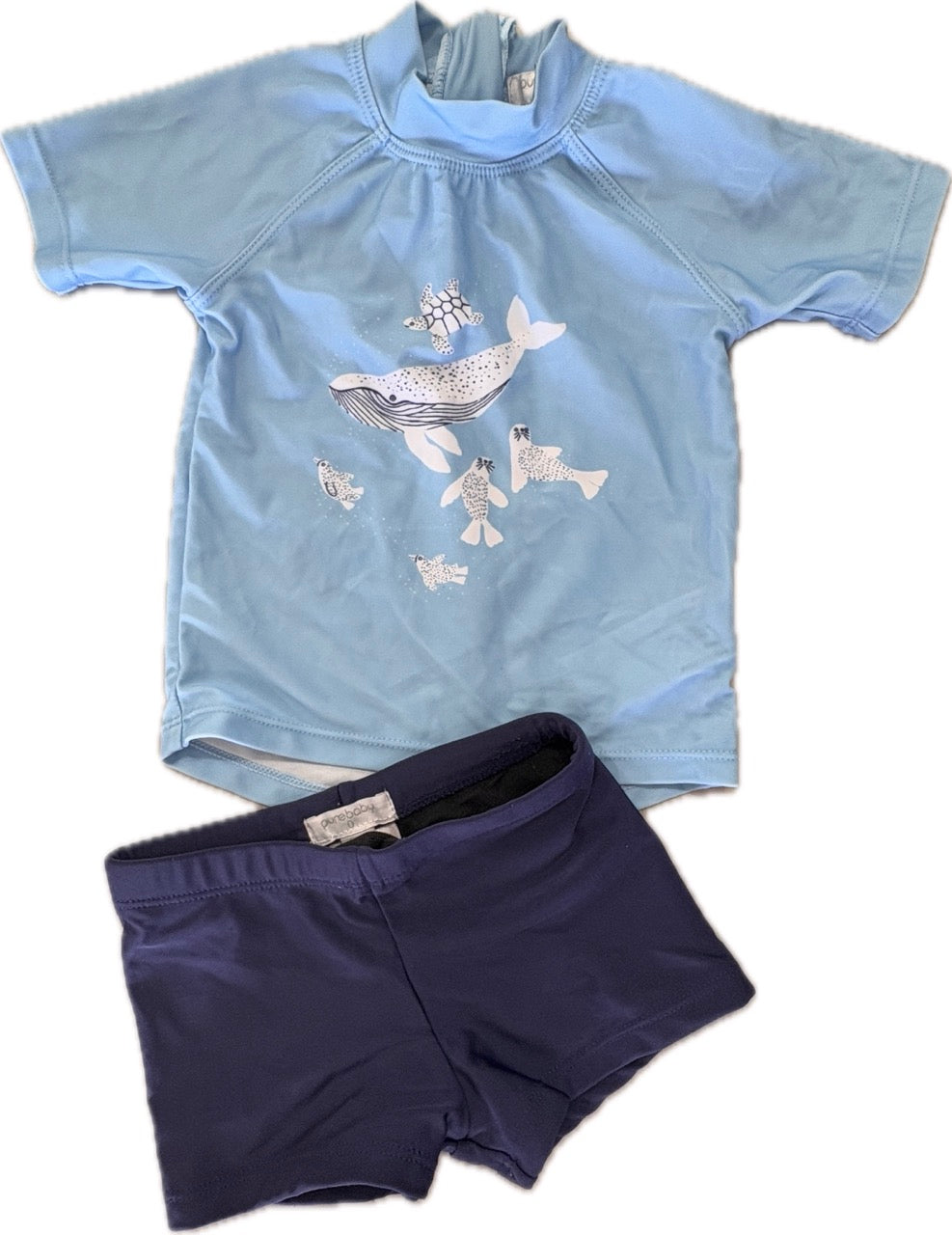 Purebaby, Whale Placement Rashie Set, EUC, Size 0 (6-12m)
