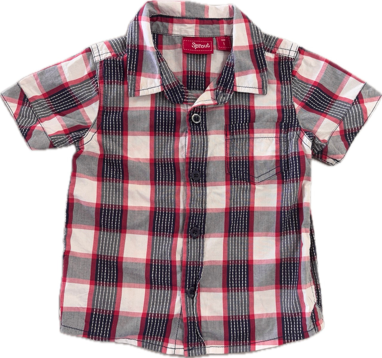 Sprout, Plaid Boys Collared Top, EUC, Size 1 (12m)