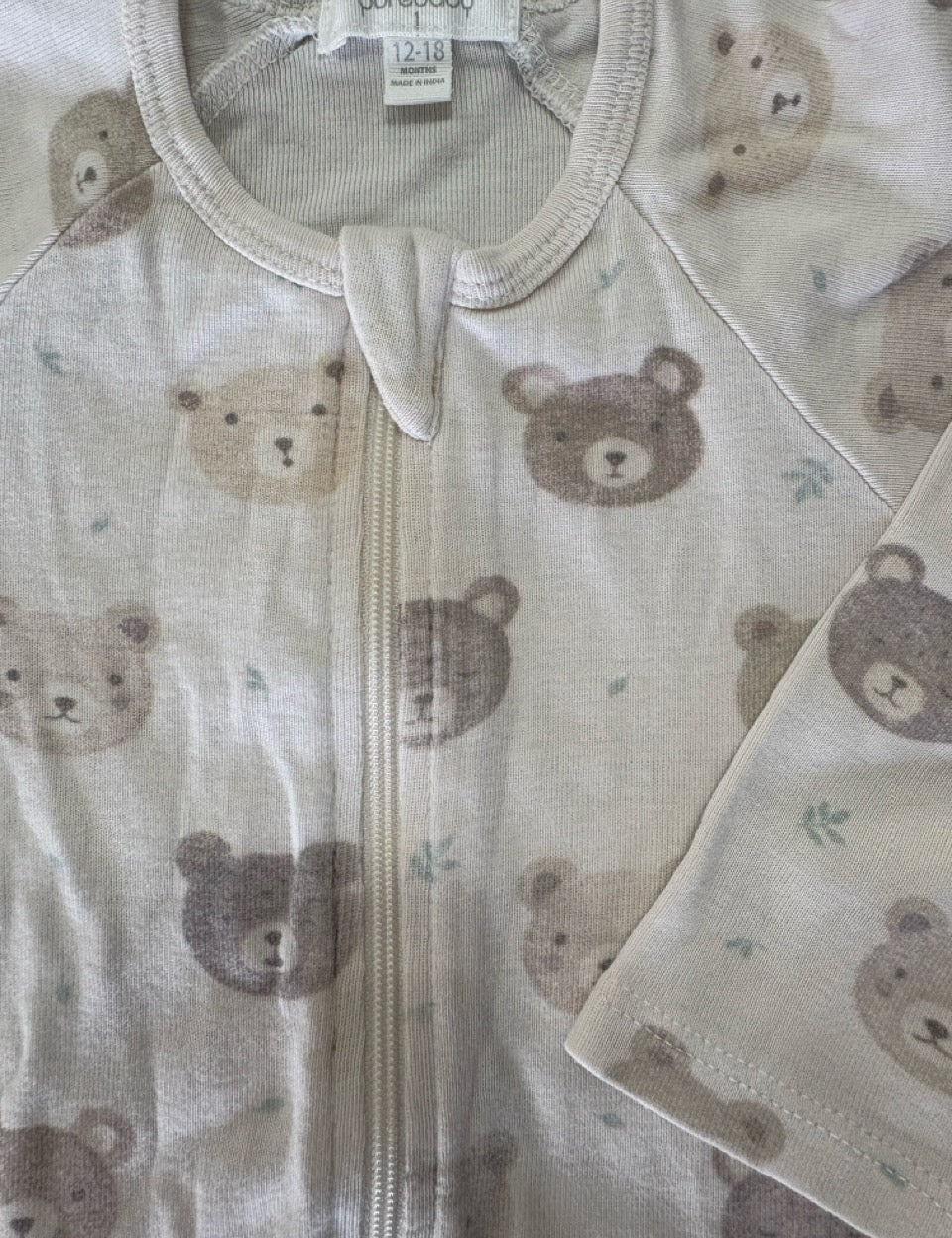 Purebaby, Bear Footed Onesie, GFUC, Size 1 (12m)