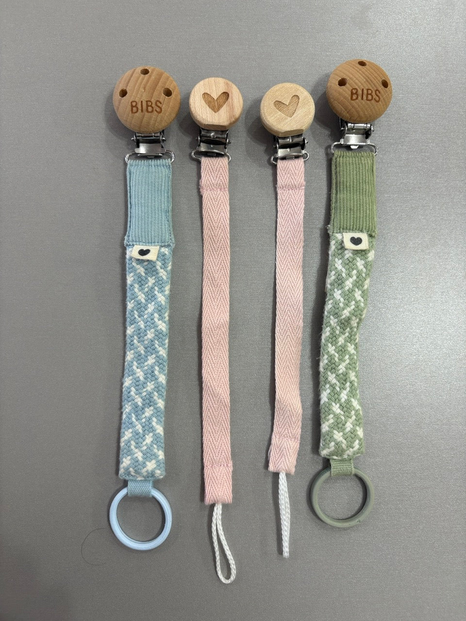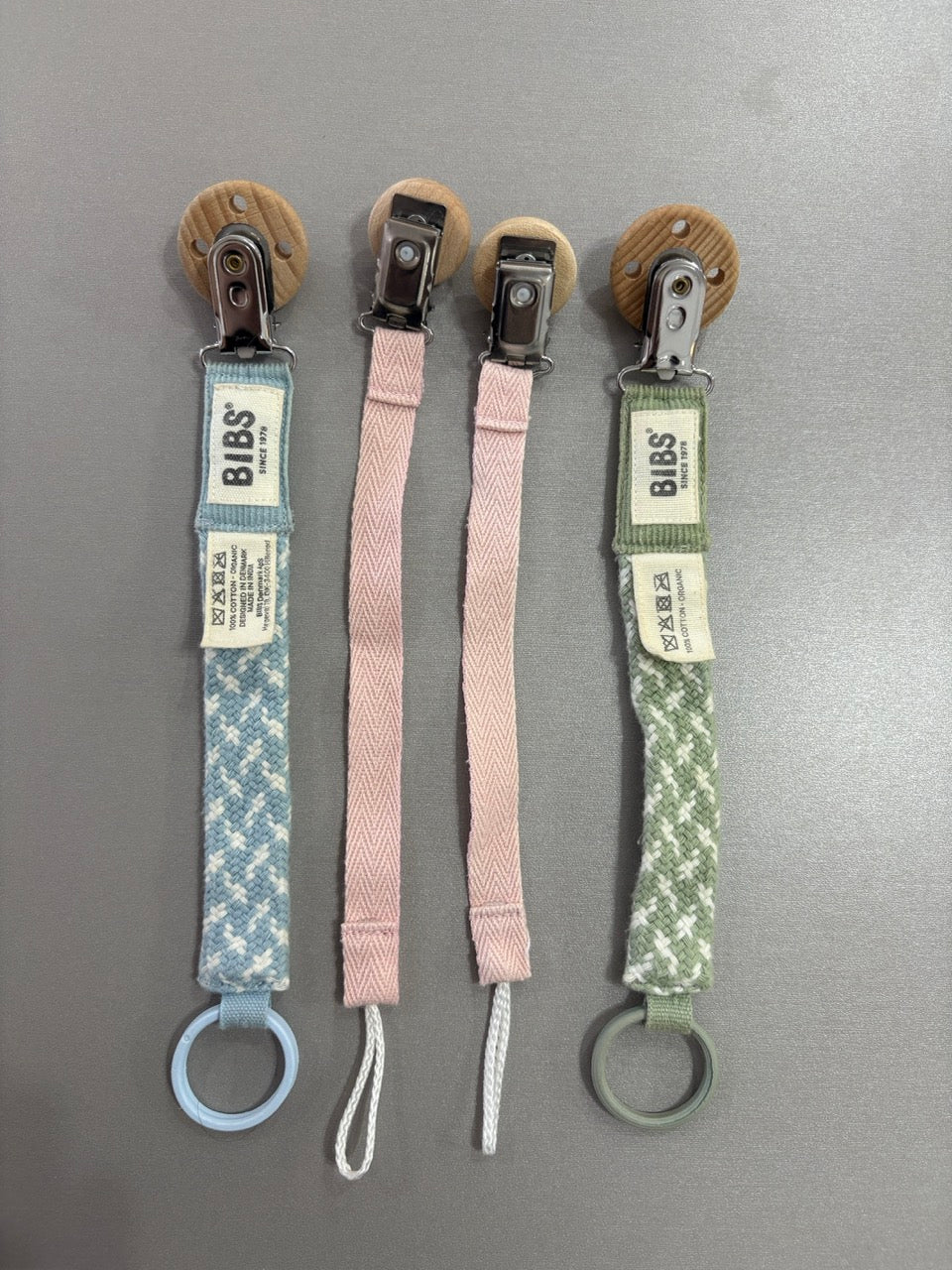 Bibs, Pacifier Braid Dummy Clips, Set of 4, GUC