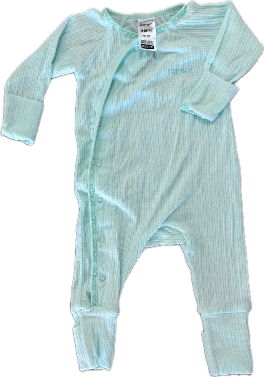 Bonds, Baby Pointelle Cozysuit in Teal, EUC, Size 000 (0-3m)