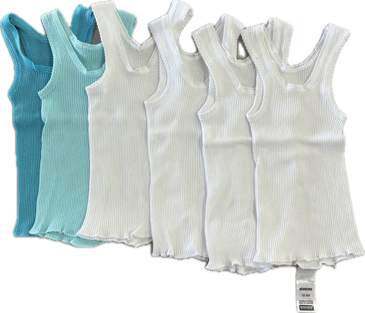 Bonds, Baby Singlet 6 Pack in White/Blue, NWOT, Size 0000 (Newborn)