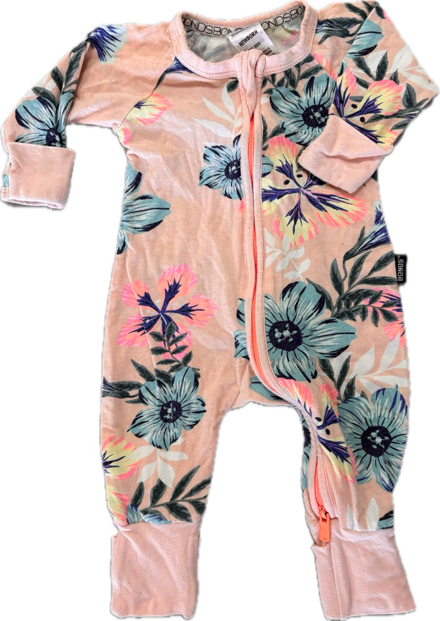 Bonds, Coral Floral Wondersuit, GUC, Size 0000 (Newborn)