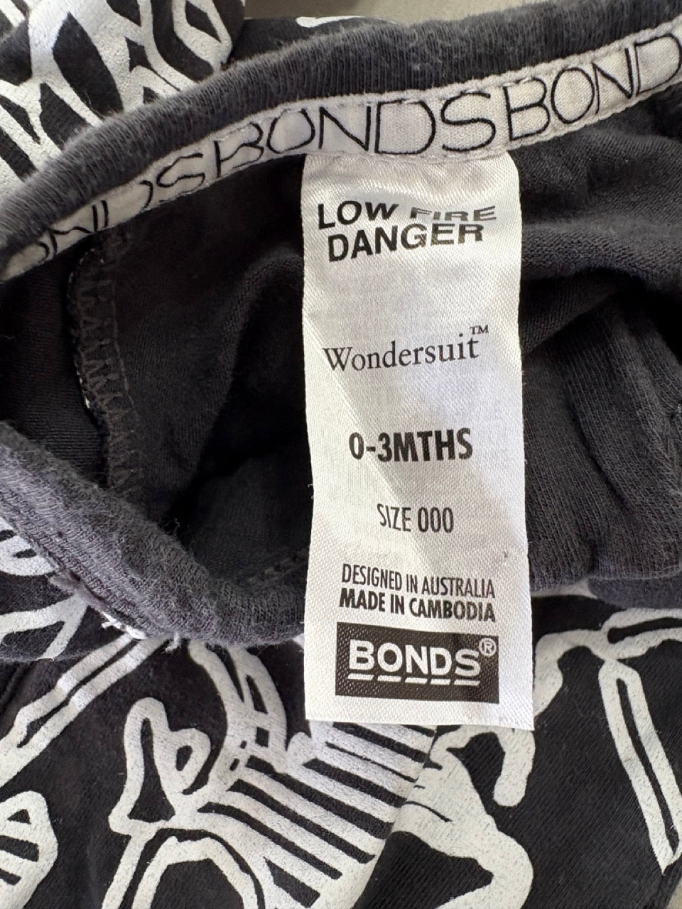 Bonds, Black/White design Wondersuit, EUC, Size 000 (0-3m)