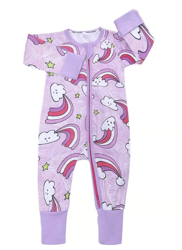 The zip wondersuit in comfy stretchy cotton and cute prints with a 2-way zip!
