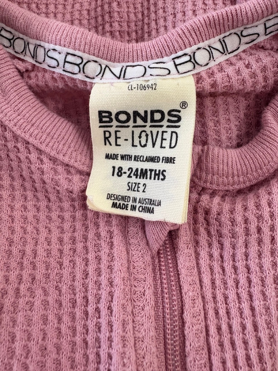 Bonds, Waffle Zip Wondersuit Re-loved in Pink, EUC, Size 2 (18-24m)