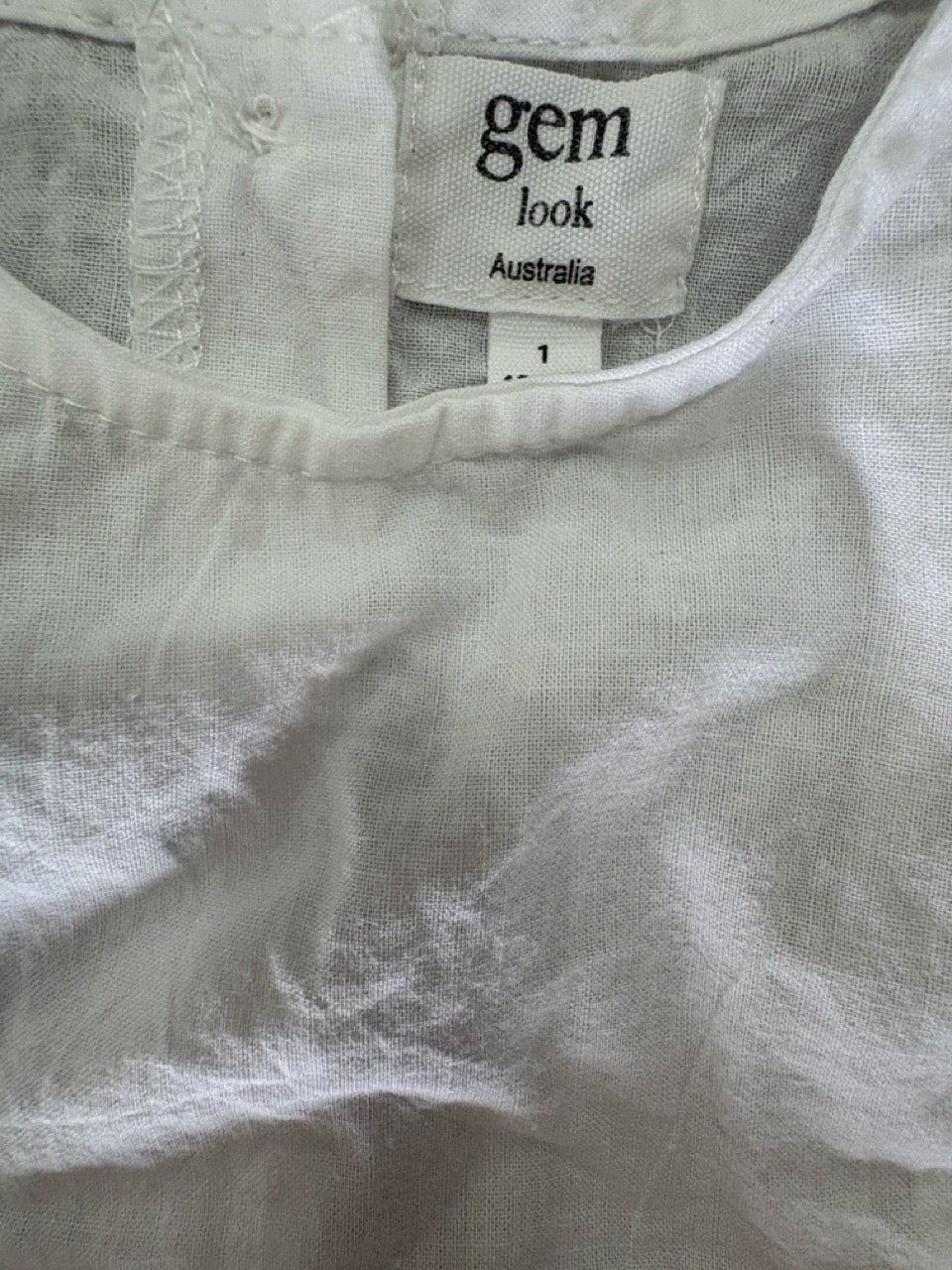 Gem Australia, White Lace Pleat Romper, EUC, Size 1 (12-18m)
