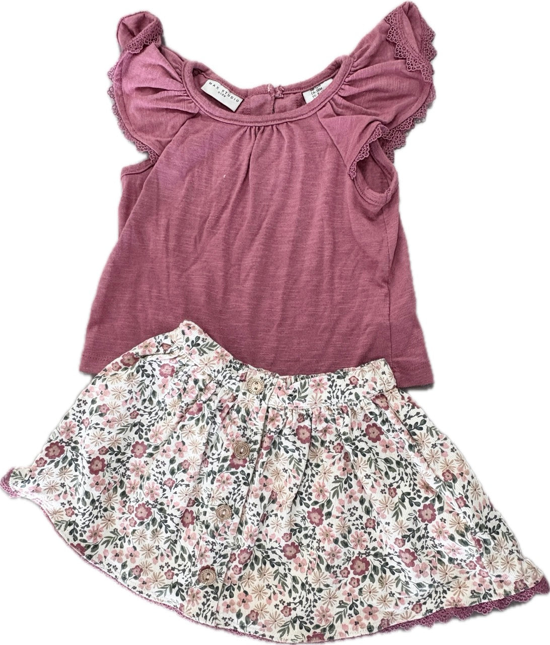 Max Studio, Flutter Sleeve Top and Lace Trimmed Skirt, EUC, Size 0 (6-12m)