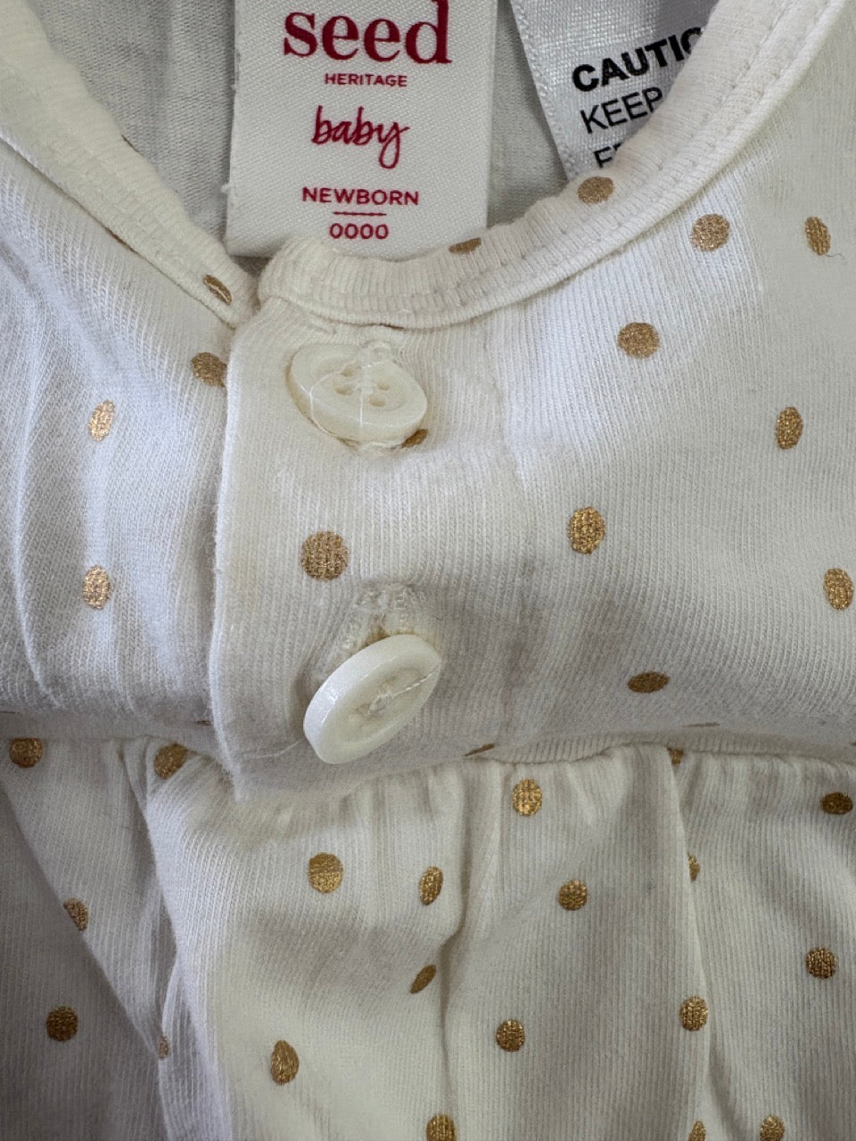 Seed Baby, Gold Polka-Dot Romper, EUC, Size 0000 (Newborn)