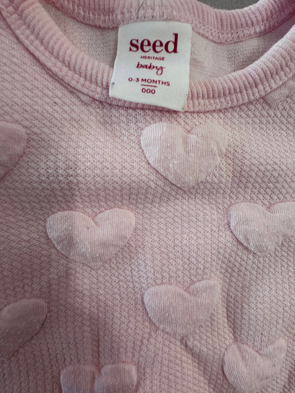 Seed Baby, Pink Heart Pique Light Jumper, EUC, Size 000 (0-3m)