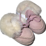 Sheep Skin, Baby Girl's Pocono Leather Shearling Tie Bootie, GUC, Size XL (1-3UK)