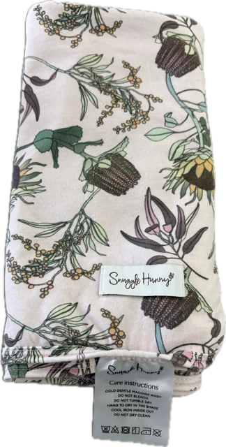 Snuggle Hunny, Banksia Print Cotton Baby Blanket, GUC