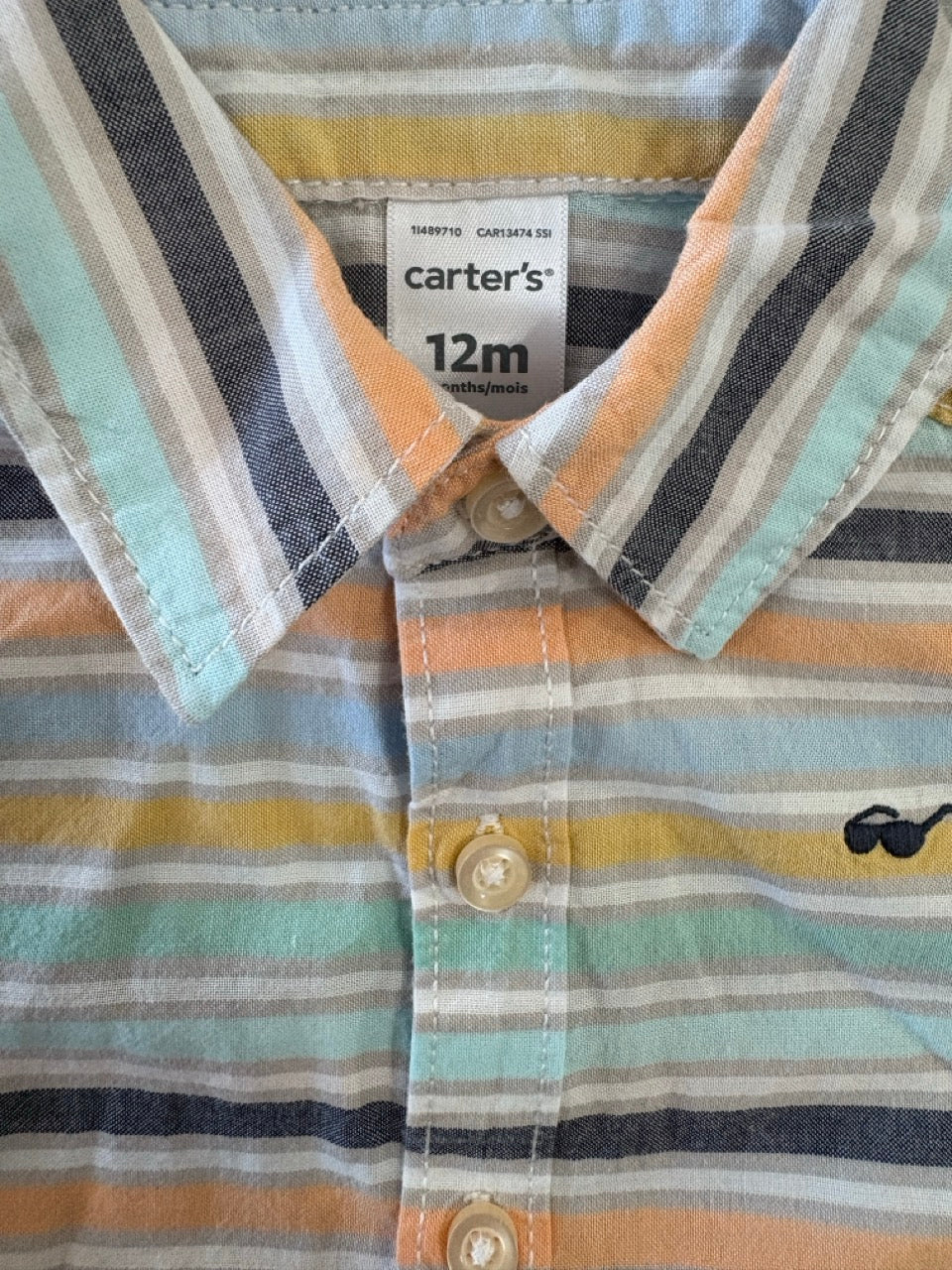 Carters, Stripe Pastel Collared Tee, EUC, Size 1 (12m)