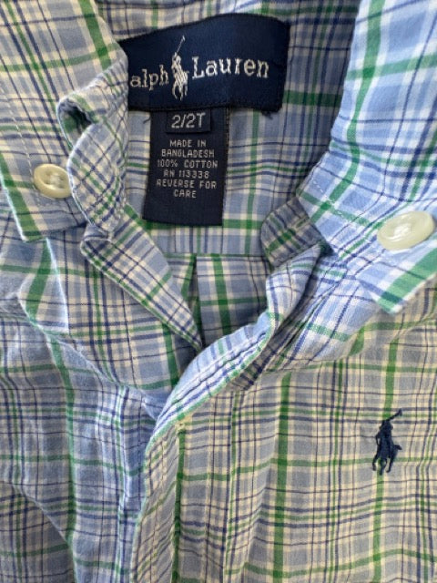 Ralph Lauren, Plaid Cotton Short-Sleeve Shirt, EUC, Size 2