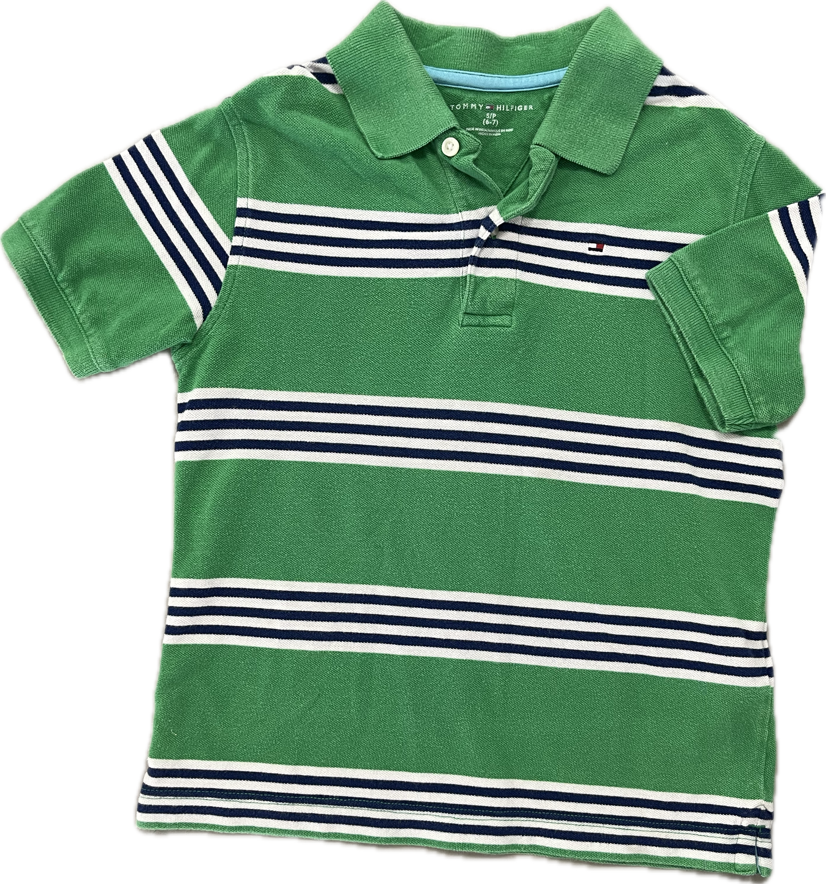 Tommy Hilfiger, Boys Green Striped Polo, EUC, Size 6/7