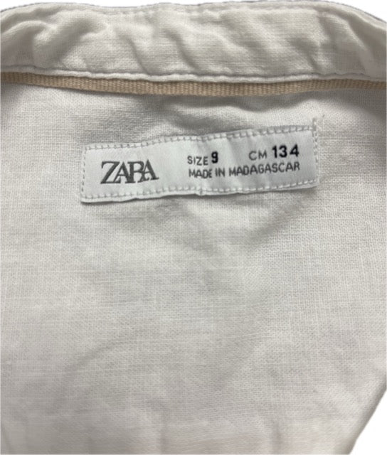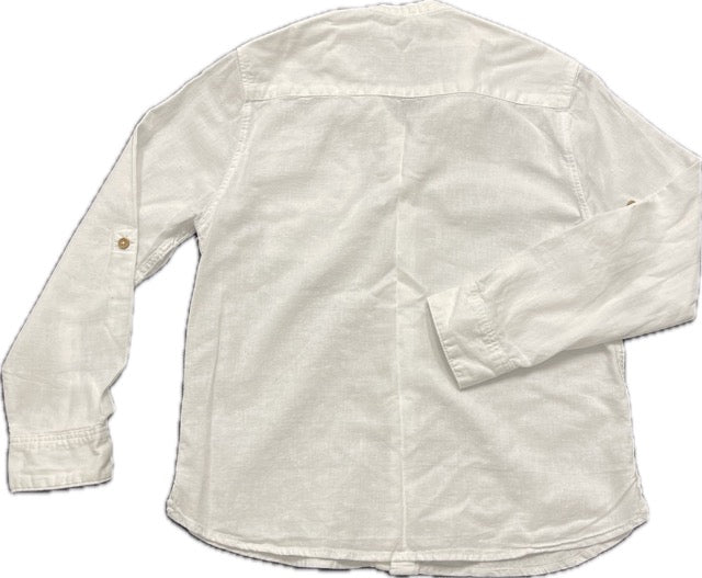 Zara, 100% LINEN MANDARIN COLLAR WHITE SHIRT, EUC, Size 9