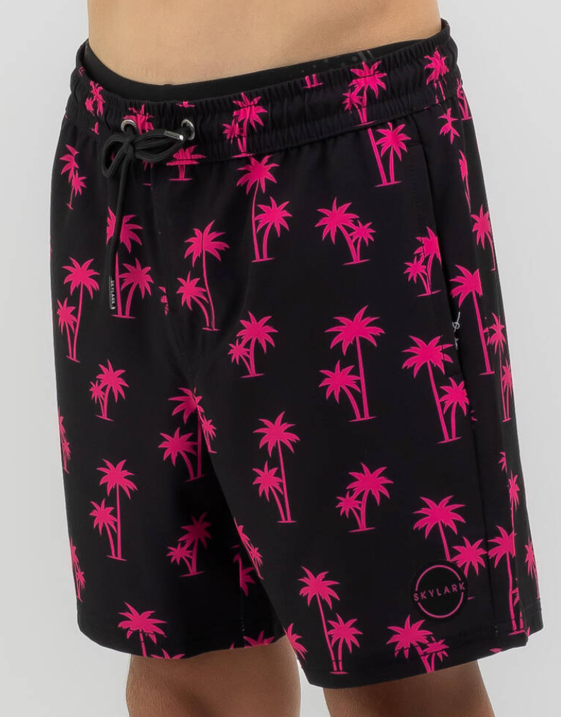 Skylark, Boys' Tropicana Elastic Waist Shorts in Black, GFUC, Size 12