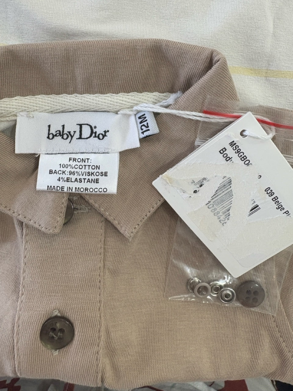 We have performed comprehensive internal checks on this Baby Dior Romper (including verifying the branded buttons and "Made in Morocco" manufacturing origin) to ensure its authenticity.