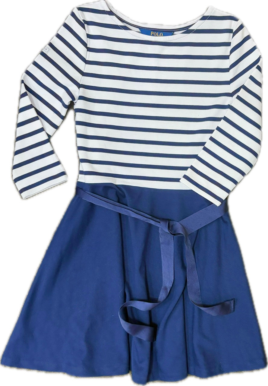 POLO RALPH LAUREN, Girls' Stripe Knit Ponte Dress - Big Kid In French Navy/white, NWOT, Size 8-10