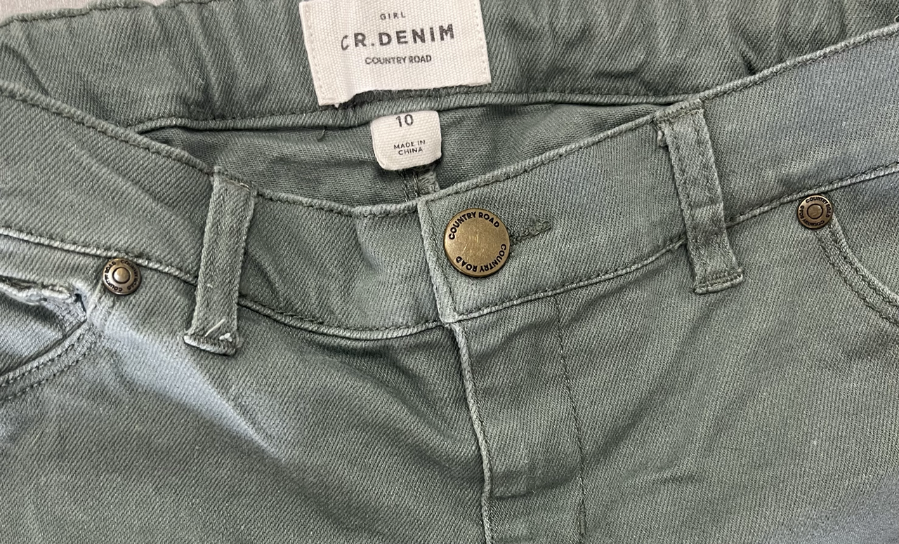 Country Road Girl, Olive Jeans w/Adj Waist, EUC, Size 10