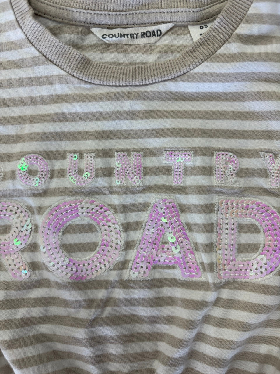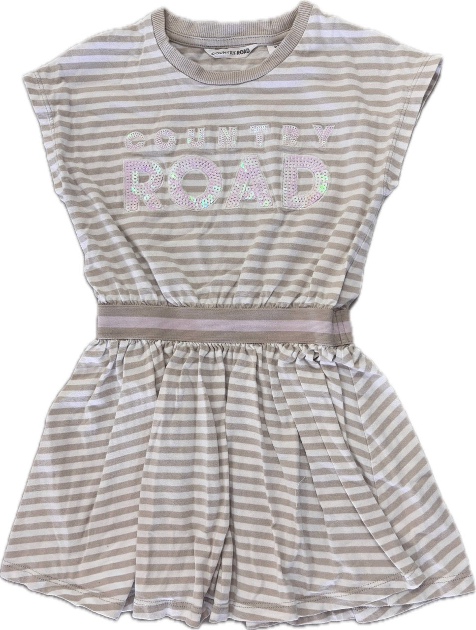 Country Road, Organically Grown Cotton Logo T-shirt Dress in Sand Stripe, EUC, Size 3