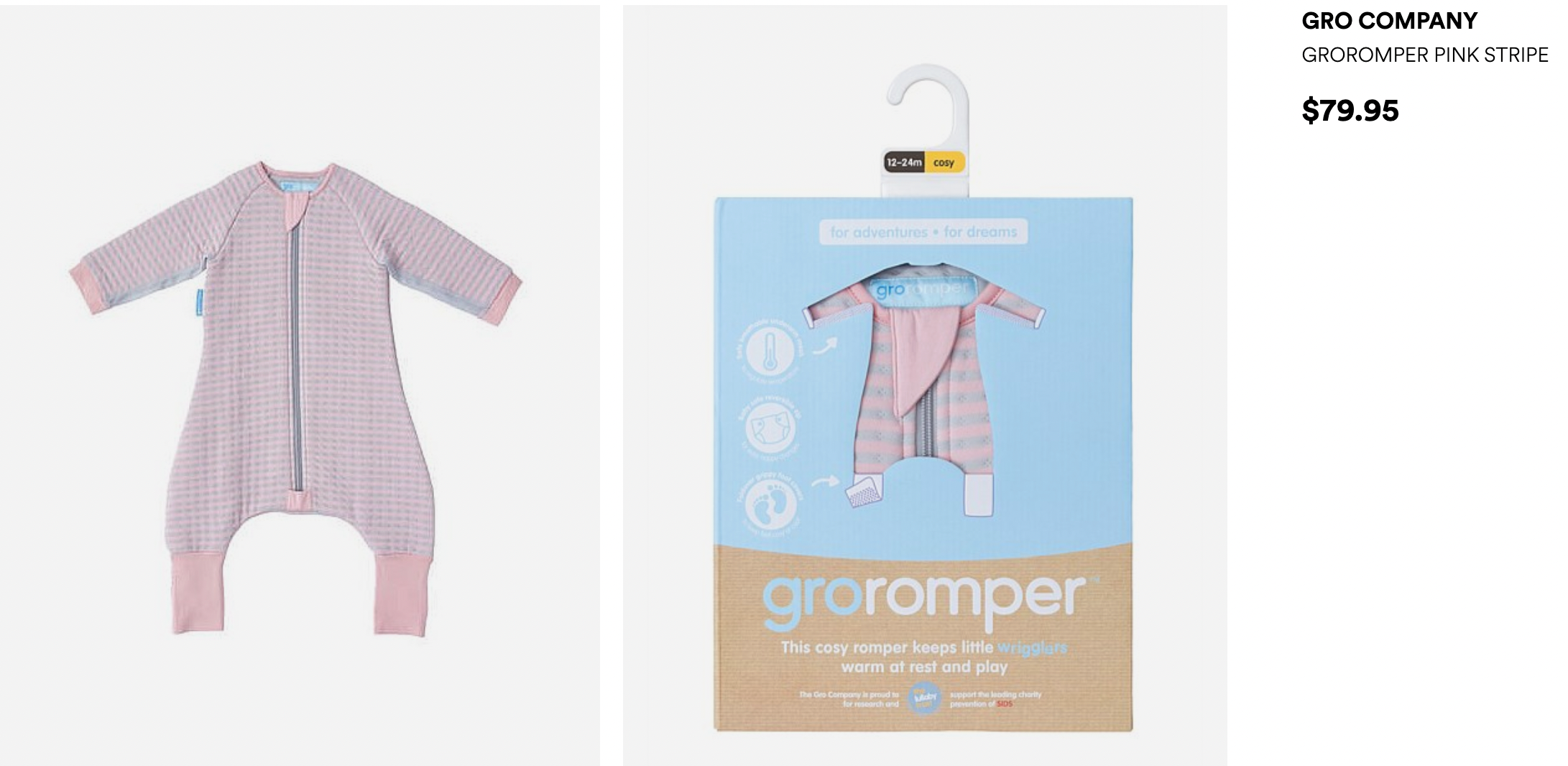 The reversible zip allows for easy nappy changes and if you're on the move the Groromper can be used with a five point harness for transferring sleepy little ones to bed without disturbing them.