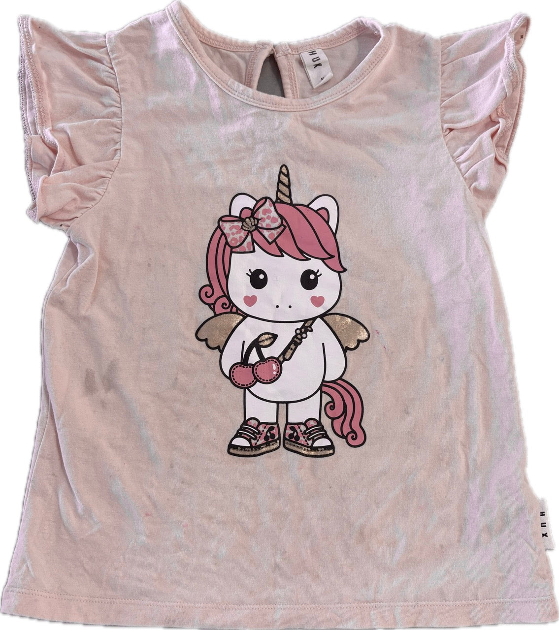 Huxbaby, Frill T-Shirt Fairy Unicorn - Peach Fuzz, FUC*, Size 5
