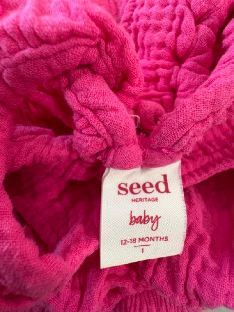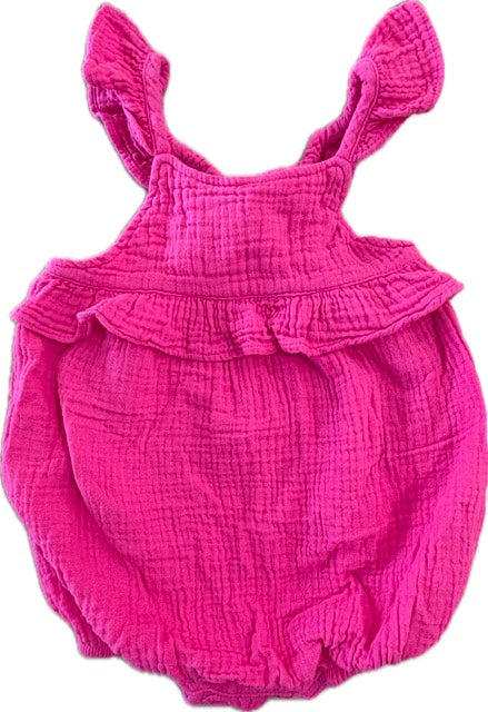 Seed Baby, Fuchsia Pink Cheesecloth Romper, EUC, Size 1 (12-18m)