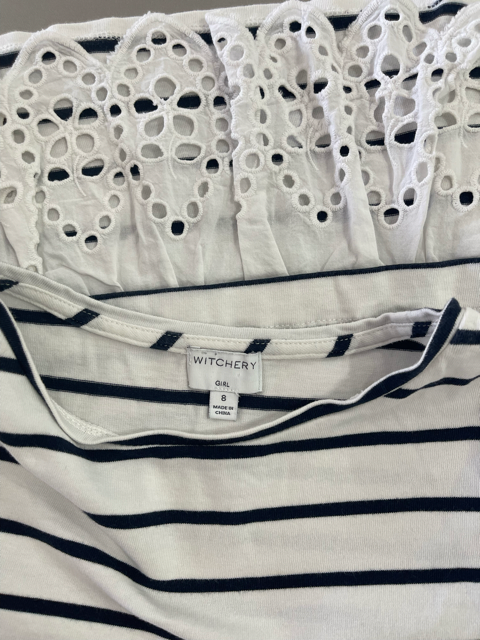 Witchery Girl, Striped Top w/Lace Sleeves, EUC, Size 8