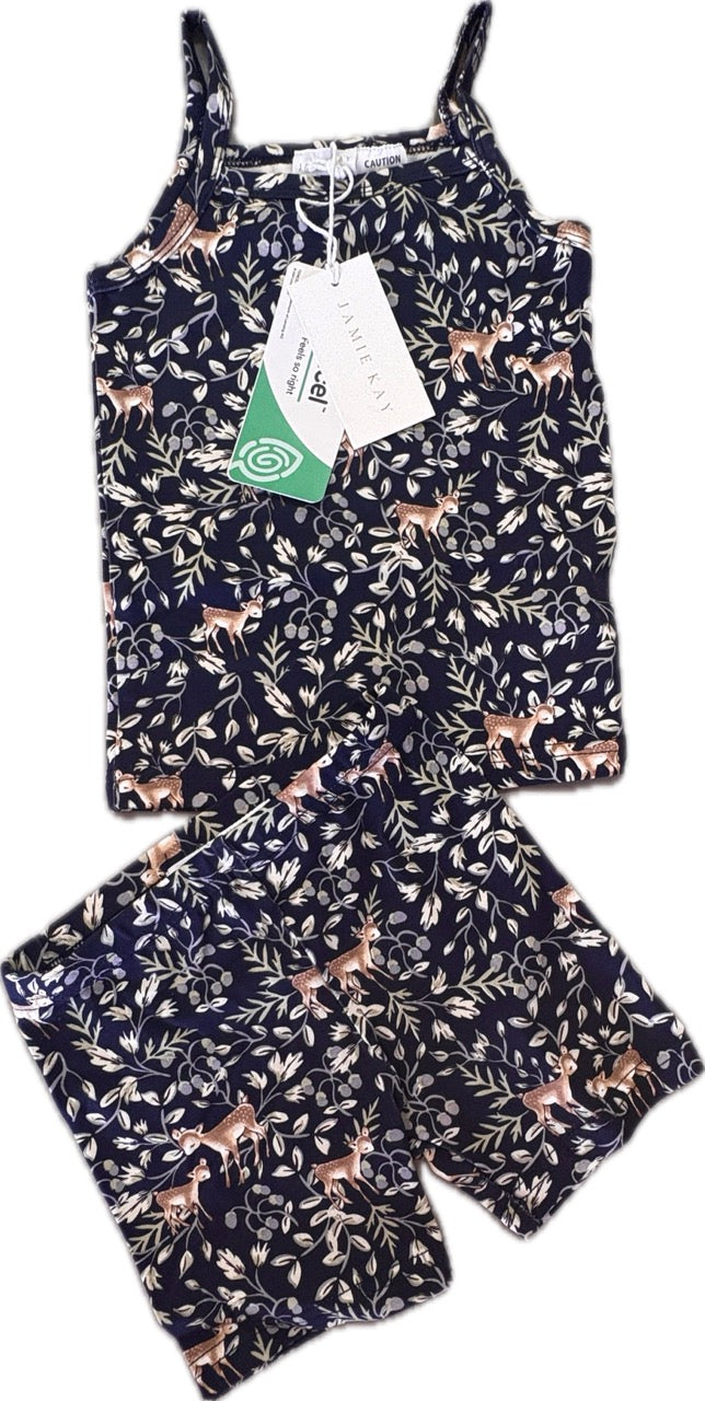 Jamie Kay, Organic Cotton Modal Daisy May Pyjama Singlet Set - Deer Berries Ink, NWTS, Size 2