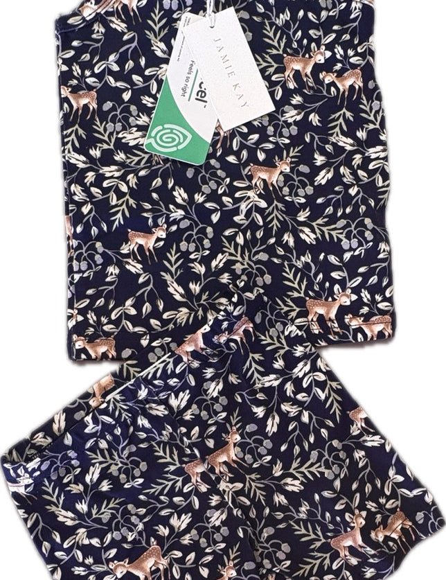 Jamie Kay, Organic Cotton Modal Daisy May Pyjama Singlet Set - Deer Berries Ink, NWTS, Size 2