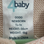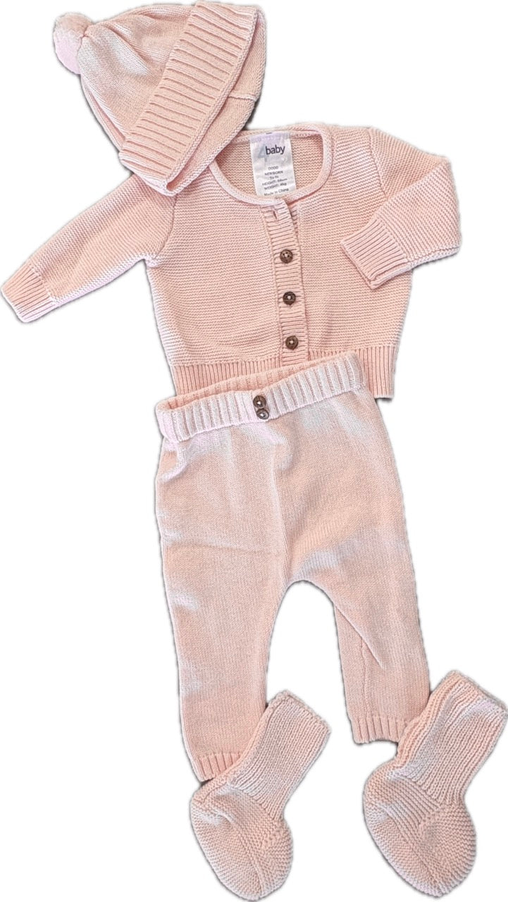 4Baby, Cardigan/Pant/Hat/Bootie Set Knit Pink, EUC, Size 0000 (Newborn)