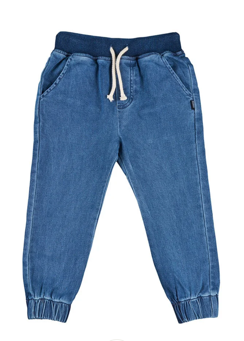 Bonds, Kids Denim Terry Trackie- Mid Blue Chambrey, EUC, Size 6
