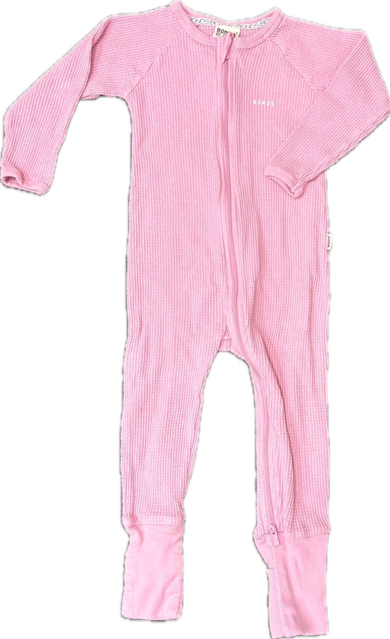 Bonds, Waffle Zip Wondersuit Re-loved in Pink, EUC, Size 2 (18-24m)