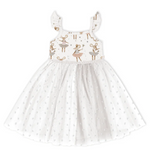 Fabric: The ribbed tulle dress features an ultra-soft bodice crafted from a blend of bamboo and organic cotton, lined with solid bamboo for extra comfort. The skirt boasts three full layers of tulle, adding a gorgeous, voluminous flair.