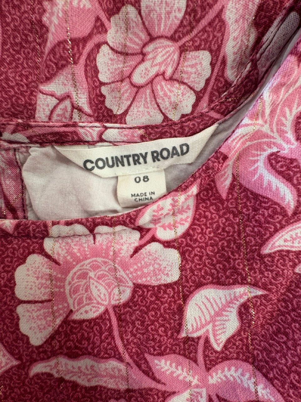 Country Road, Organically Grown Lined Cotton Burgundy Flare Dress in Multi Floral, EUC, Size 8